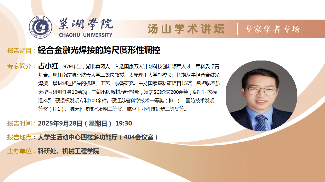 • 9月28日:南京航空航天大學占小紅教授講座